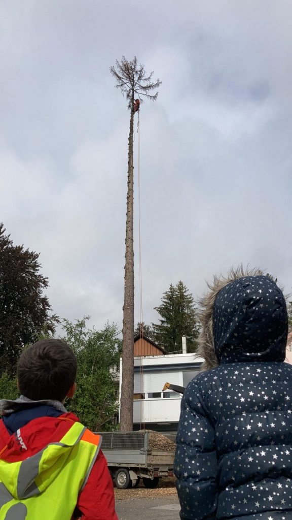 Nous sommes allés vers la foret. Nous avons vu un bûcheron sur le chemin. Il a commencé par couper les branches et après le tronc.
