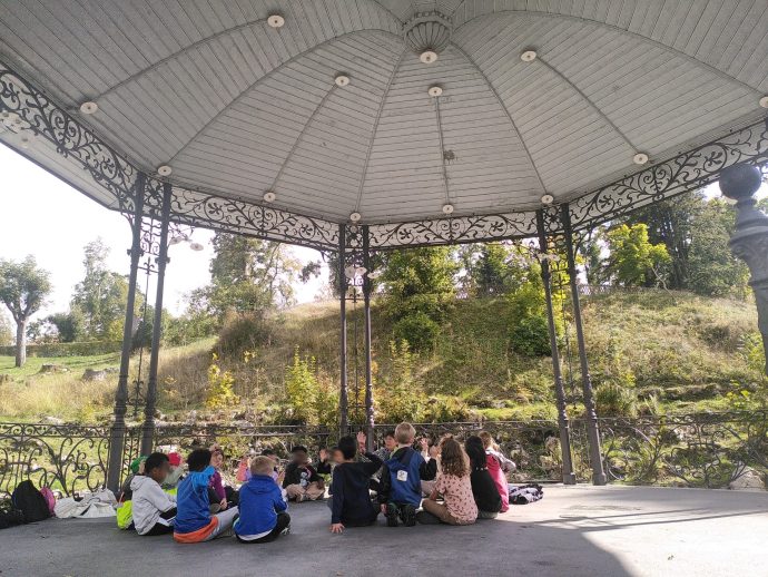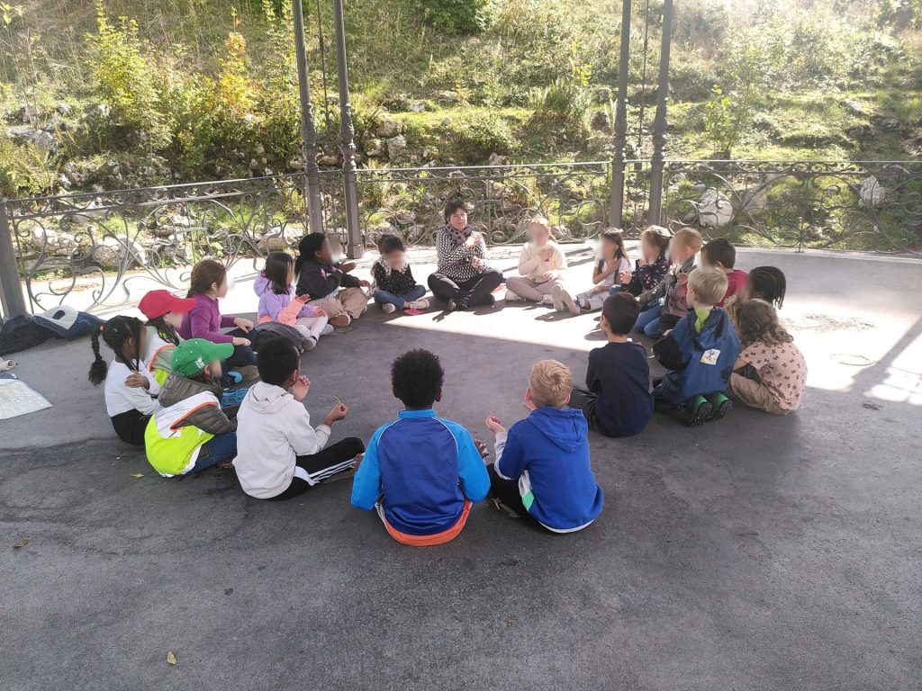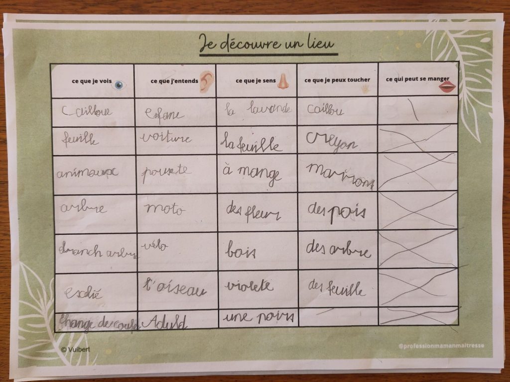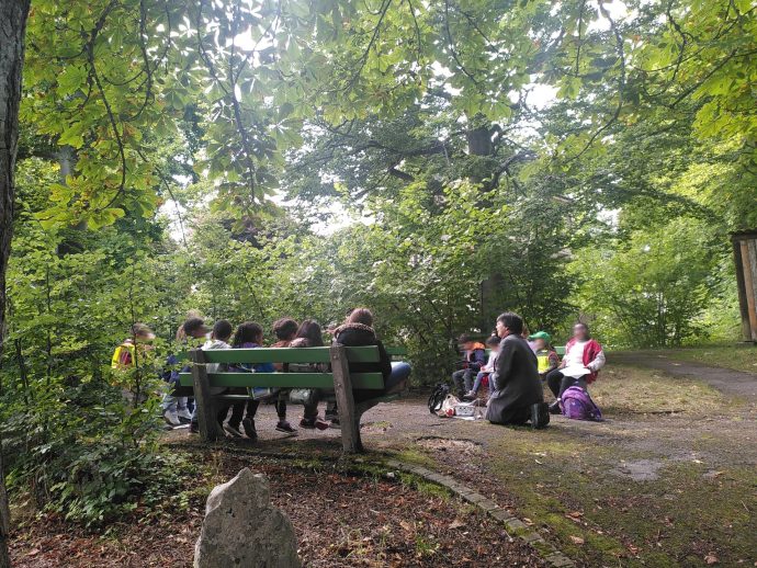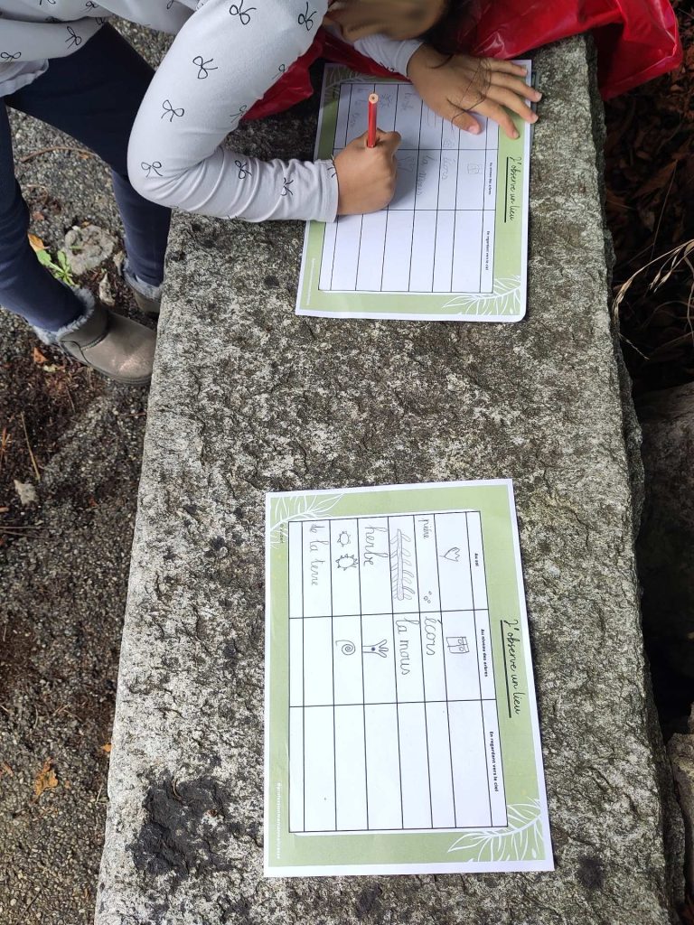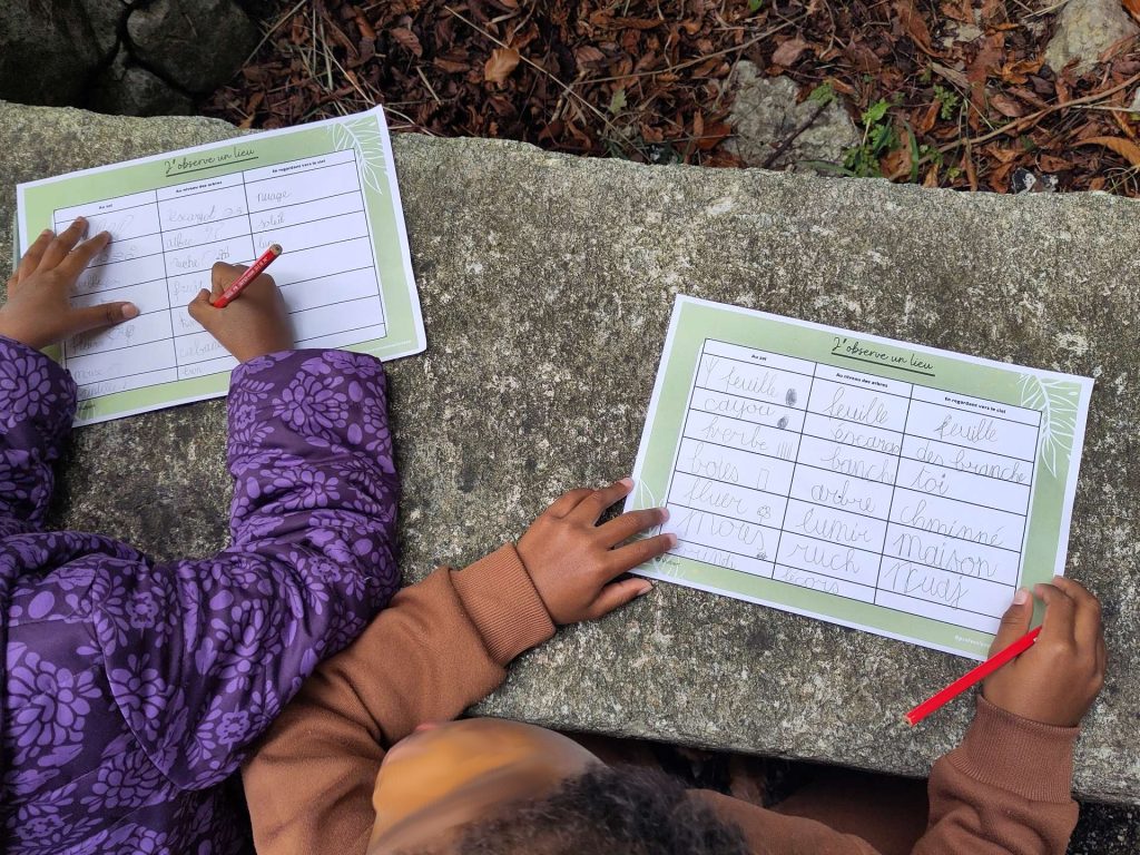Un petit rituel s’est établi avec quelques élèves qui consiste à faire du calcul mental pendant le déplacement vers la forêt avec une approche très intuitive des nombres négatifs.