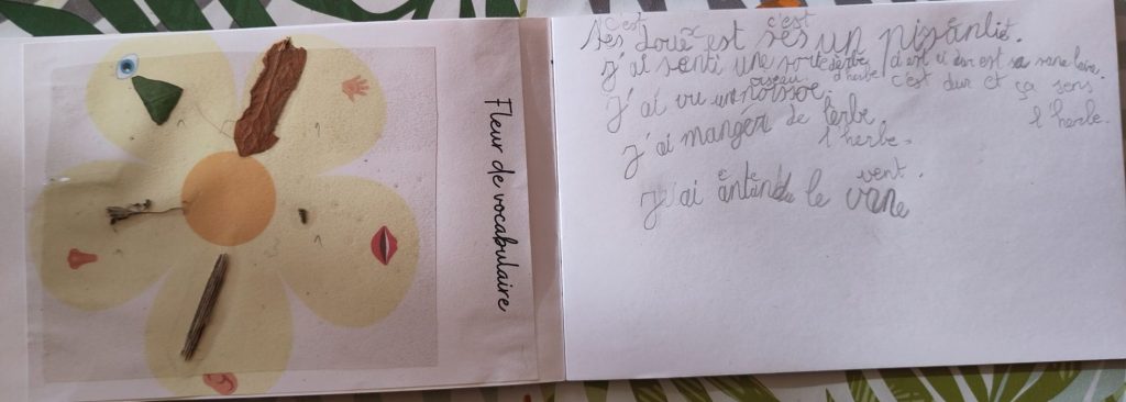 L’évaluation du résultat était très simple : tenir le mobile par la ficelle centrale et s’il était en équilibre aller l’accrocher à une corde que nous avions tendue entre deux arbres.